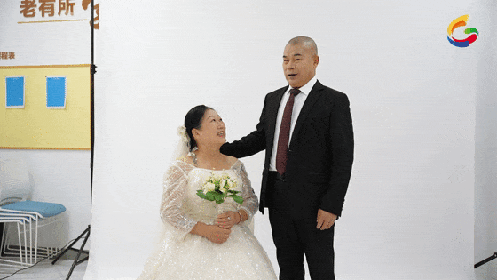 “年轻的时候没有机会,没拍过婚纱照。”今年63岁的韩阿姨看着妆扮一新的老伴儿,眼里满是光彩:“今天和老伴儿一起拍婚纱照,圆了年轻时的梦,特别感谢社区工作人员提供的服务,从心底里高兴!”