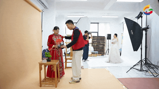 社区活动中心被精心布置成了温馨的摄影棚