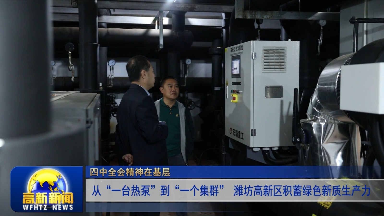 记者 丁熙坤:这里是潍坊地质家园小区,我身边的这台设备,是由山东天瑞重工有限公司与山东省煤田地质局第四勘探队共同研发的磁悬浮离心式地源热泵机组,现在工作人员正在对设备进行调试,为即将到来的供暖季做好准备。