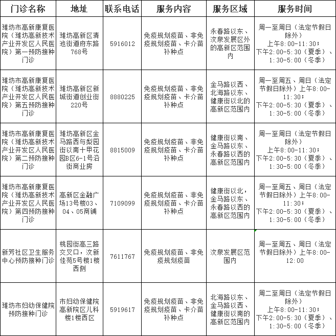据了解,为方便市民接种,潍坊高新区深入推进实施预防接种服务提质行动,统筹规划设置常规预防接种门诊6处,建立城区20分钟“预防接种服务圈”。
