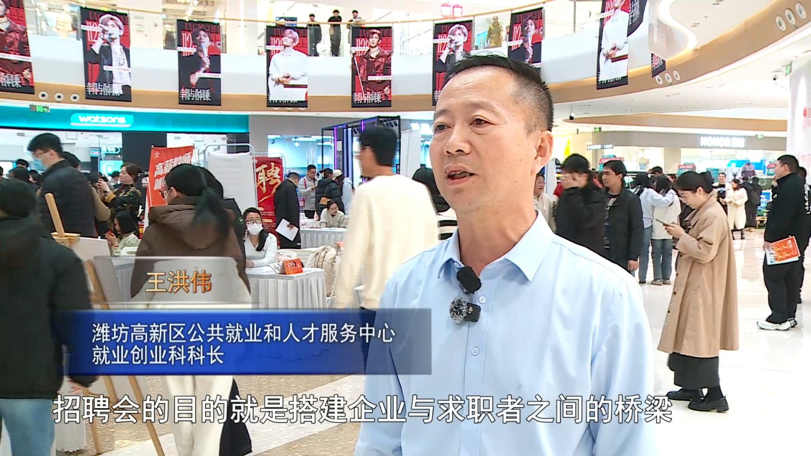 潍坊高新区公共就业和人才服务中心就业创业科科长 王洪伟:招聘会的目的就是搭建企业与求职者之间的桥梁,做好人才用工保障,服务企业发展,为青年人才和求职者创造更好更多就业机会。