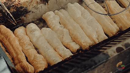 油锅里的面食滋滋冒泡