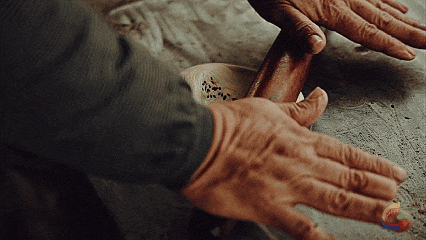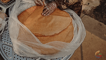 用传统石磨制作的煎饼
