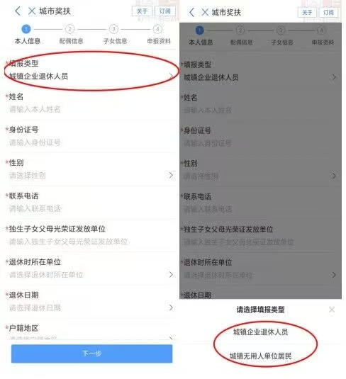 ■ 为避免错误申报被退回,请准确选择填报类型:城镇企业退休人员或城镇无用人单位居民;户籍地所在街道、社区居委会填写必须正确,如果不清楚可咨询社区。