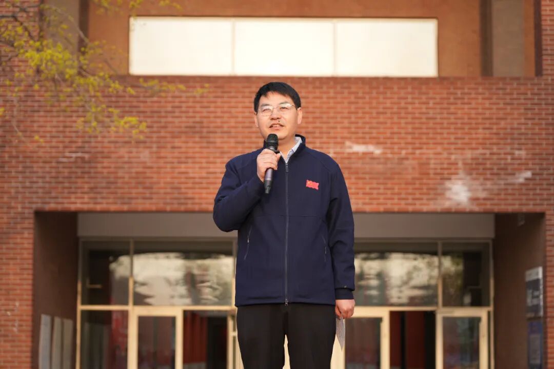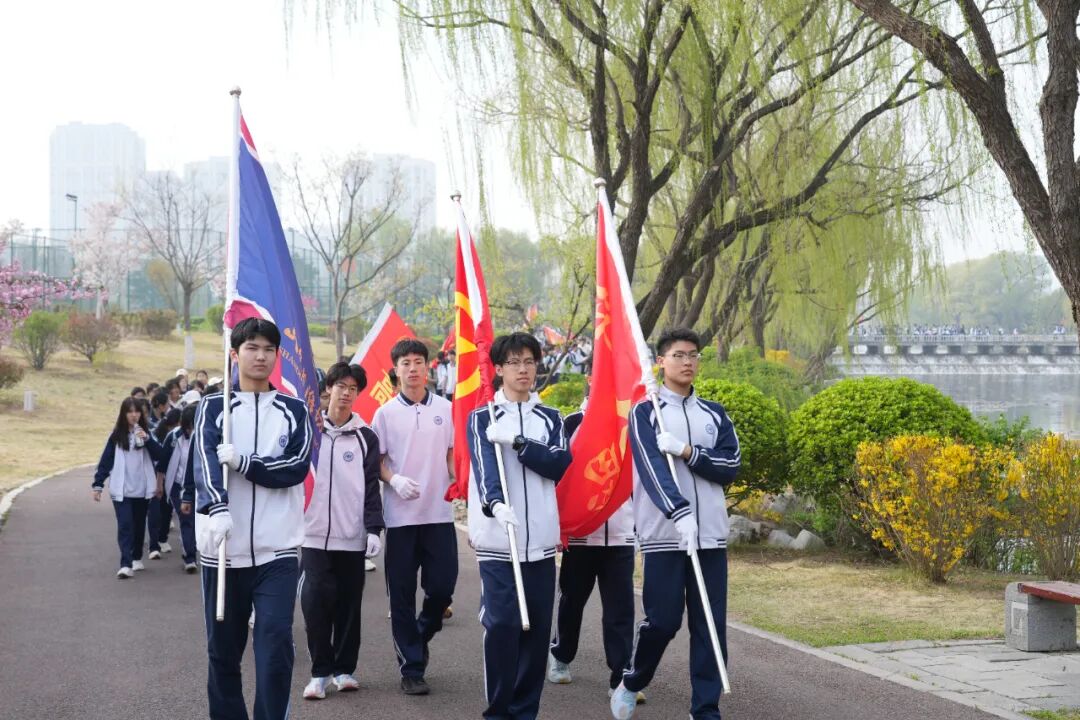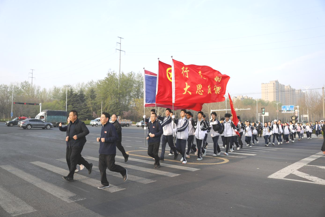 副校长张伟铿锵有力的动员讲话激荡人心,党委书记王勇亲手为远足队伍授旗,并一声令下:出发!