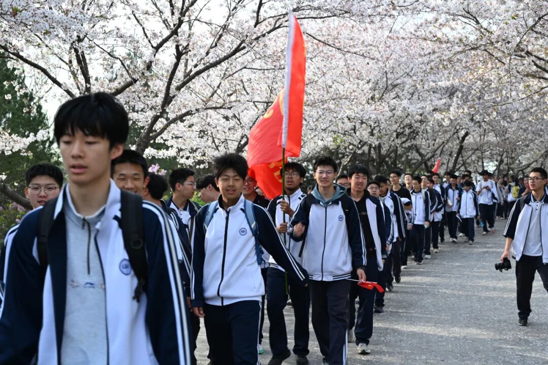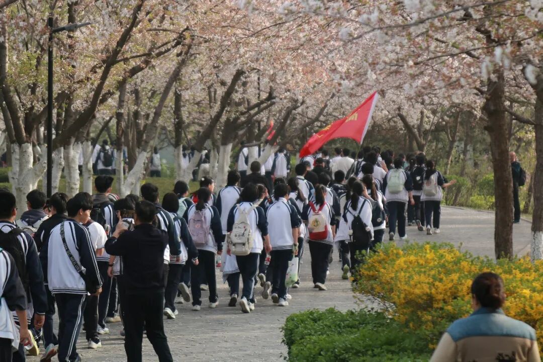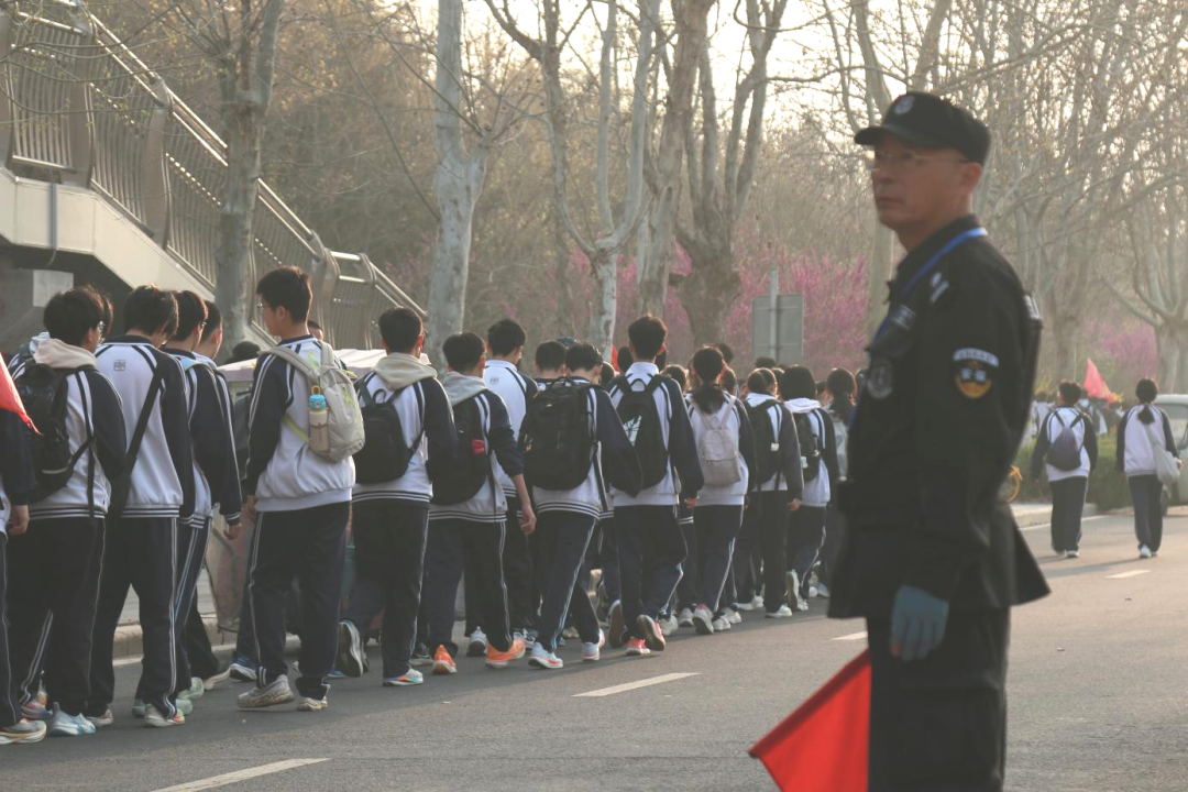 行进中,校领导身先士卒,带队领航;班主任全程陪伴,悉心守护;家长志愿者暖心相随,贴心护航;交警与安保人员沿途值守,疏导保障。多方同心聚力,为青春远足筑起一道坚实可靠的安全屏障。