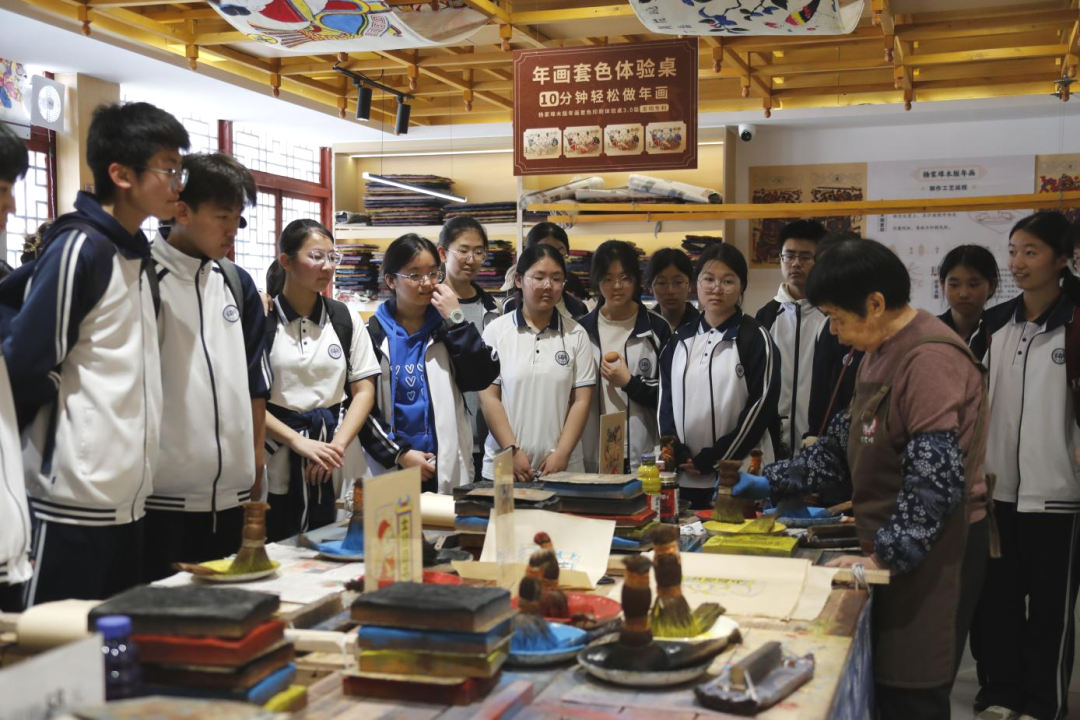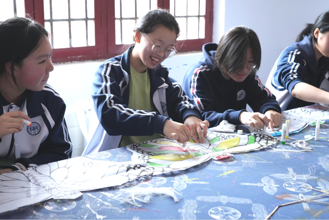 历时3小时徒步,全体师生以坚韧意志顺利抵达杨家埠民间艺术大观园。大家滑状元梯、亲手扎制风筝、走进民俗博物馆,近距离感受非遗技艺,沉浸式体验传统文化的魅力。