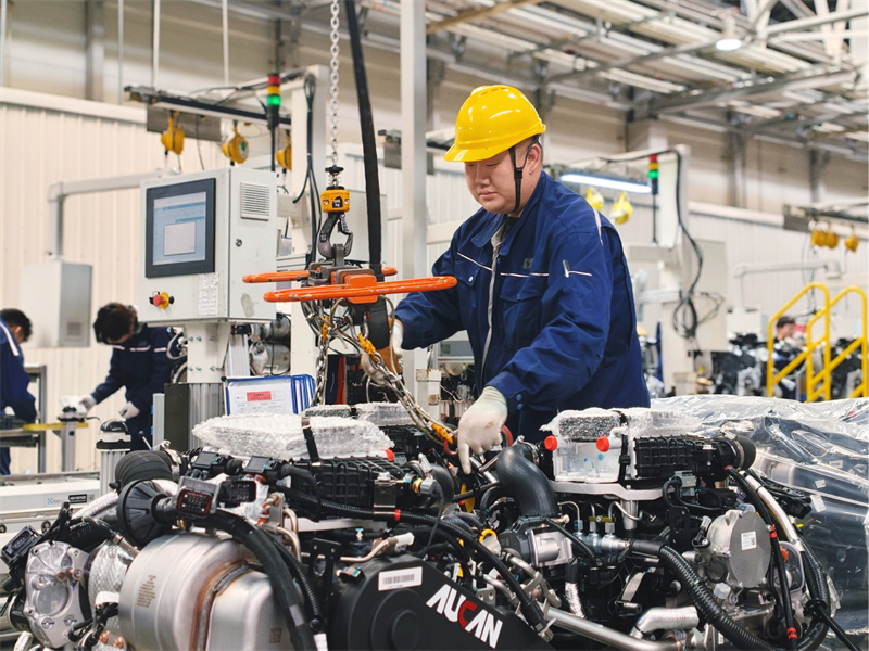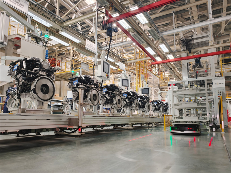 4月3日,在位于山东潍坊高新区的北汽福田欧康超级动力工厂,生产线灯火通明,一台台发动机顺着崭新辊道平稳流动。