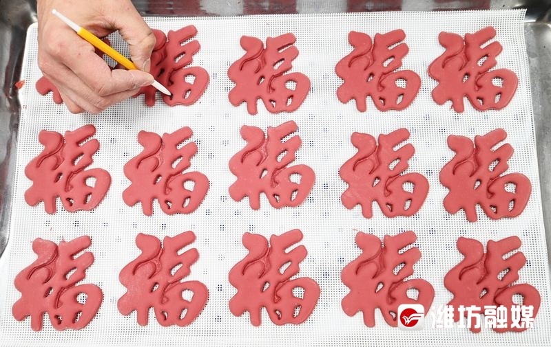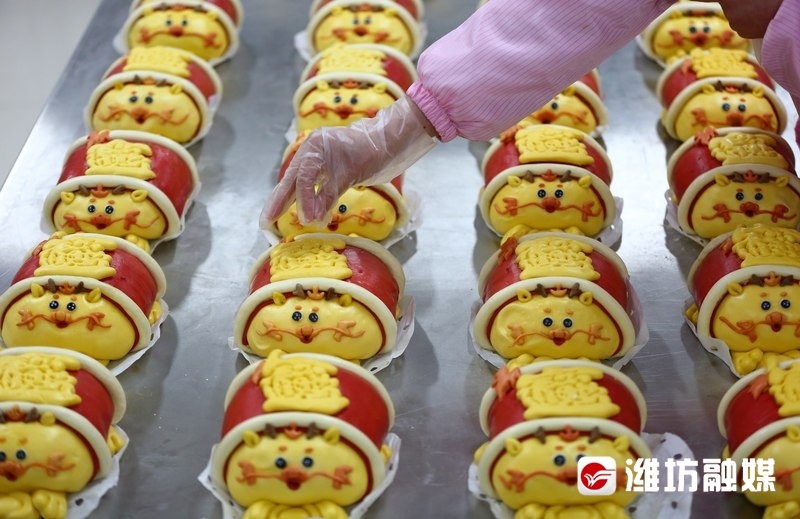 随着龙年春节临近,高密市传统花饽饽进入制作和销售的旺季。高密市醴泉街道的一家花饽饽店,民间艺人在制作“龙头”花饽饽。这些形态生动、吉祥喜庆的花饽饽受到顾客欢迎,成为了热销产品。