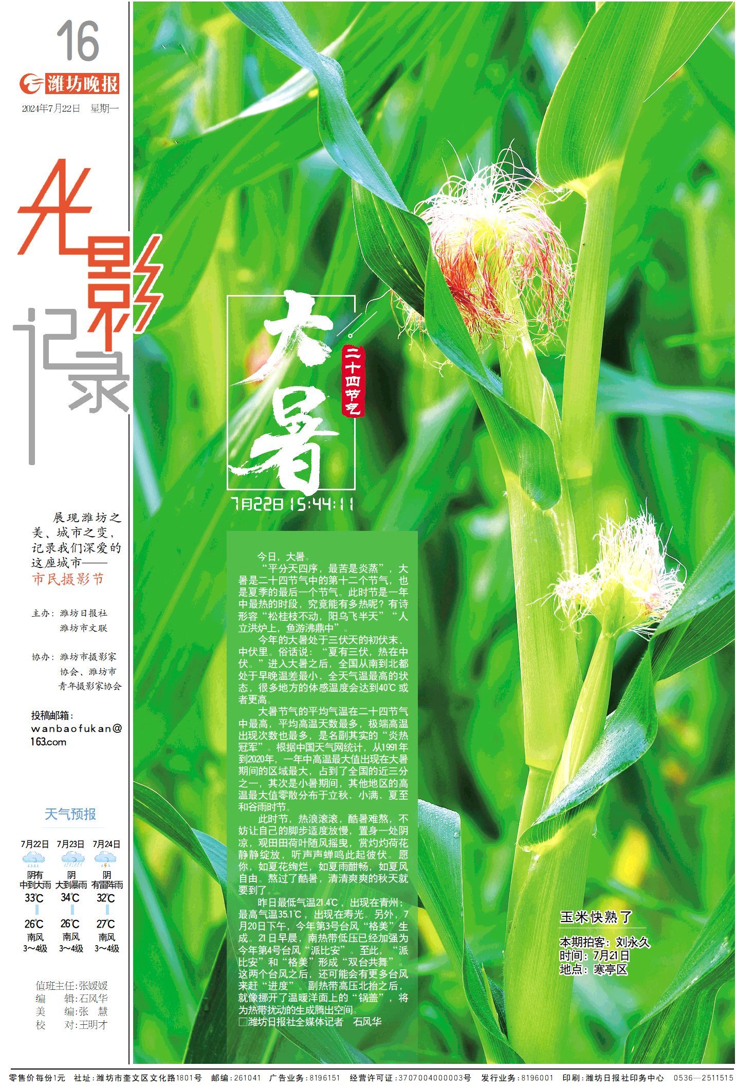 今年的大暑处于三伏天的初伏末、中伏里。俗话说:“夏有三伏,热在中伏。”进入大暑之后,全国从南到北都处于早晚温差最小、全天气温最高的状态,很多地方的体感温度会达到40℃或者更高。