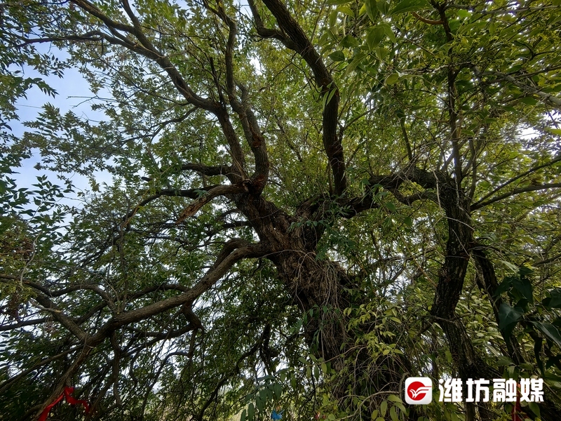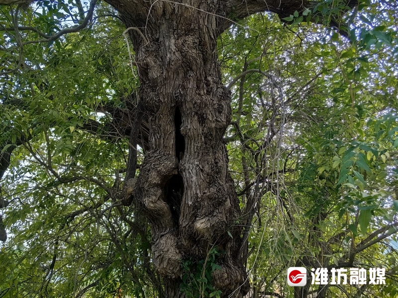 据介绍,古树高8.6米、胸围184厘米、冠幅6米,2016年被选为“潍坊市民喜爱的十大最美古树名木”。历经八百年风雨,虽显示出中空迹象,但古树依然展现出一股韧劲,繁茂的枝叶让人感受到向上的生命力。