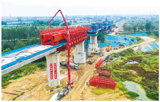 当日,国家重点项目潍(坊)宿(迁)高速铁路山东段安丘汶河特大桥十榀40米简支梁全部浇筑完成,项目承建方抢抓工期与节点,稳步推进标段施工。