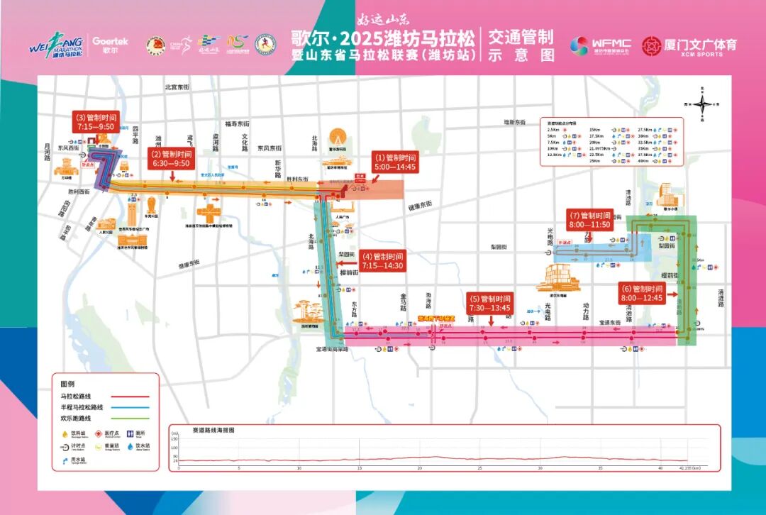 (2)请相关单位和市民提前规划出行时间和路线,自觉服从指挥,安全有序通行。(3)根据赛事活动进程及赛道周边交通流量等情况,适时调整、逐段解除交通管制措施。实施交通管制期间给您带来的不便,敬请谅解,感谢支持和配合。 潍坊市公安局交通管理支队