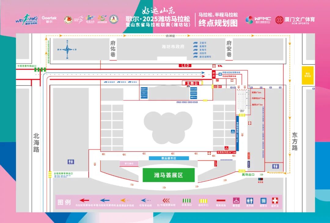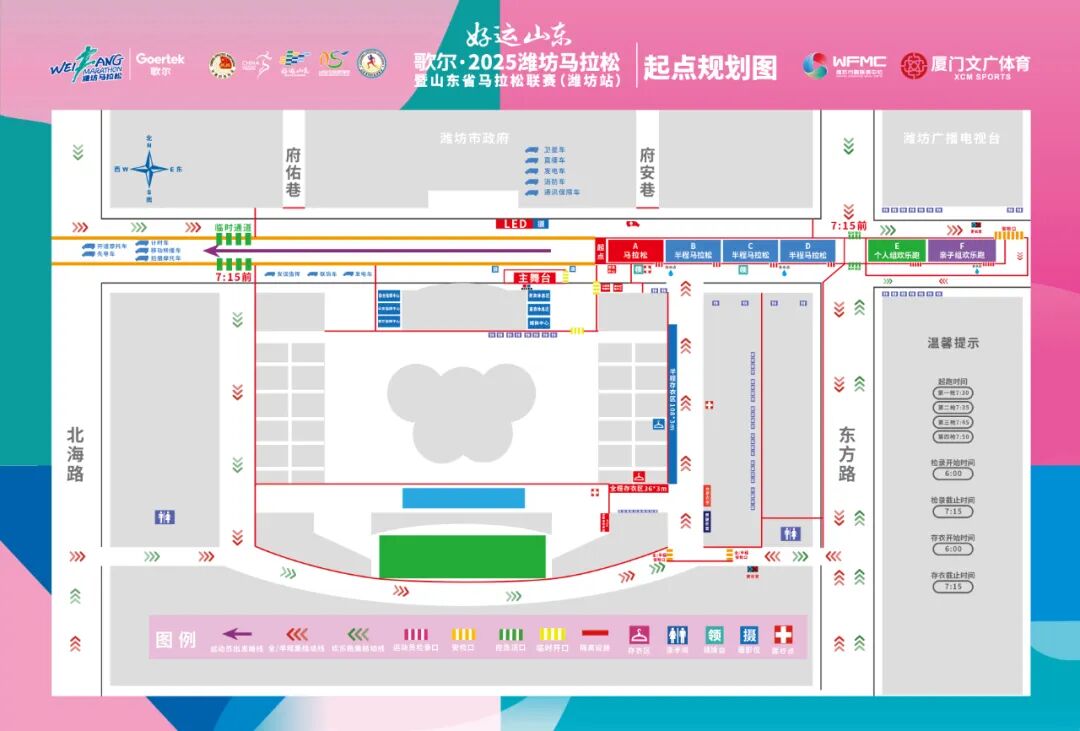 “好运山东”歌尔·2025潍坊马拉松暨山东省马拉松联赛(潍坊站)为马拉松、半程马拉松的参赛选手提供存取衣服务,现将存取衣时间及地点告知如下: