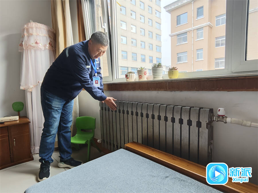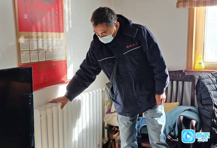 工作人员上门检查居民家暖气片的温度。