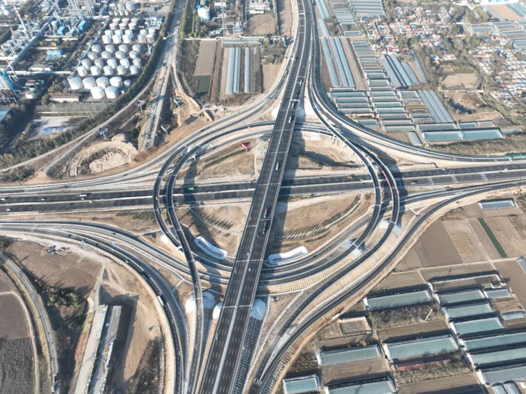 东青高速北起东营垦利区,南至潍坊青州市,是G18荣乌高速、G25长深高速的重要组成部分,也是山东省“十二纵八横十一射”高速网的核心路段。项目全长88.7公里,采用双向八车道高速公路标准,设计速度120公里/小时。路基宽度由24.5米拓宽至42米,移位重建了广饶、于家庄、青州北3处互通式立交,扩建服务区1处,新增停车区1处。扩容后的东青高速日均可承载7万至10万辆小客车通行,显著提升通行效率,彻底告别“卡脖子”的拥堵困境。