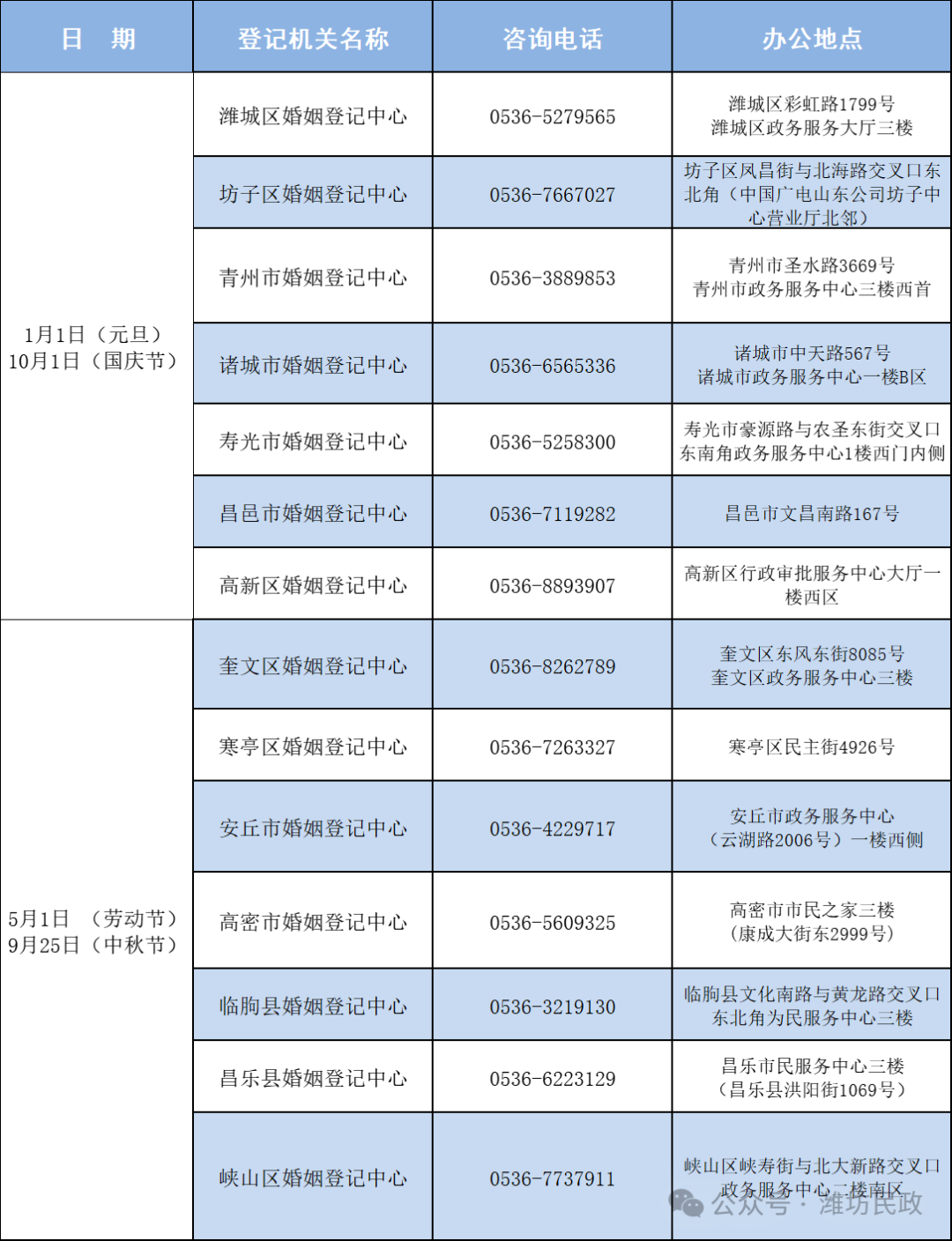 为优化婚姻登记服务,不断提升便民服务质效,满足群众对美好婚姻生活的向往。2026年,潍坊市继续向群众提供元旦、劳动节、国庆节、中秋节(农历八月十五)当天结婚预约登记服务。现就有关事项告知如下: