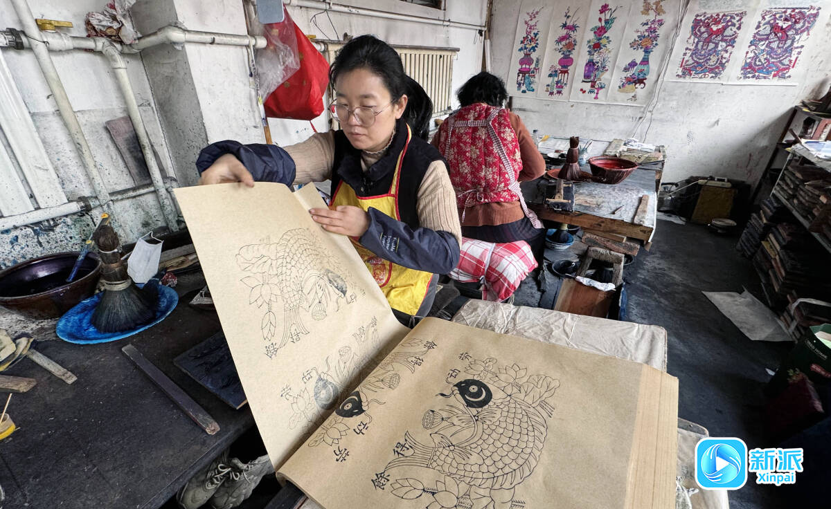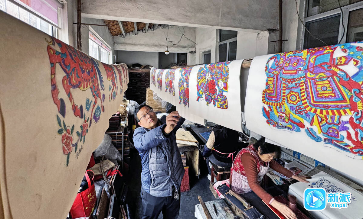 随着春节临近,具有浓郁乡土气息和鲜明艺术风格的杨家埠木版年画迎来生产旺季。1月6日,在潍坊寒亭区杨家埠恒兴义年画店里,年画艺人正在印制木版年画。