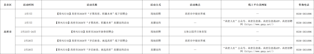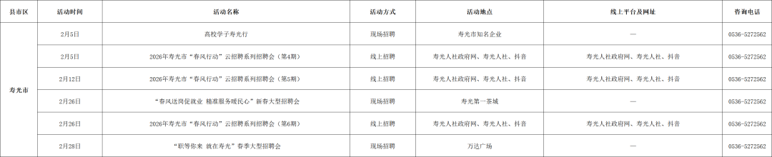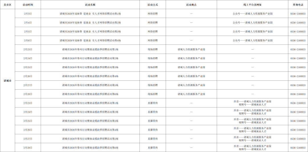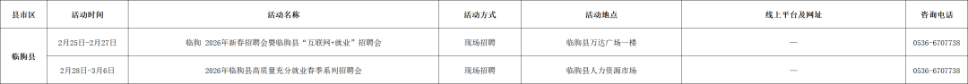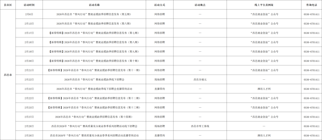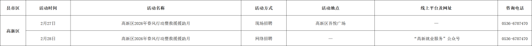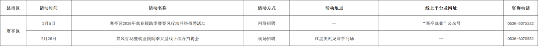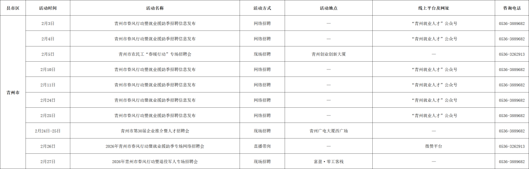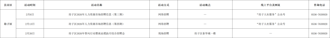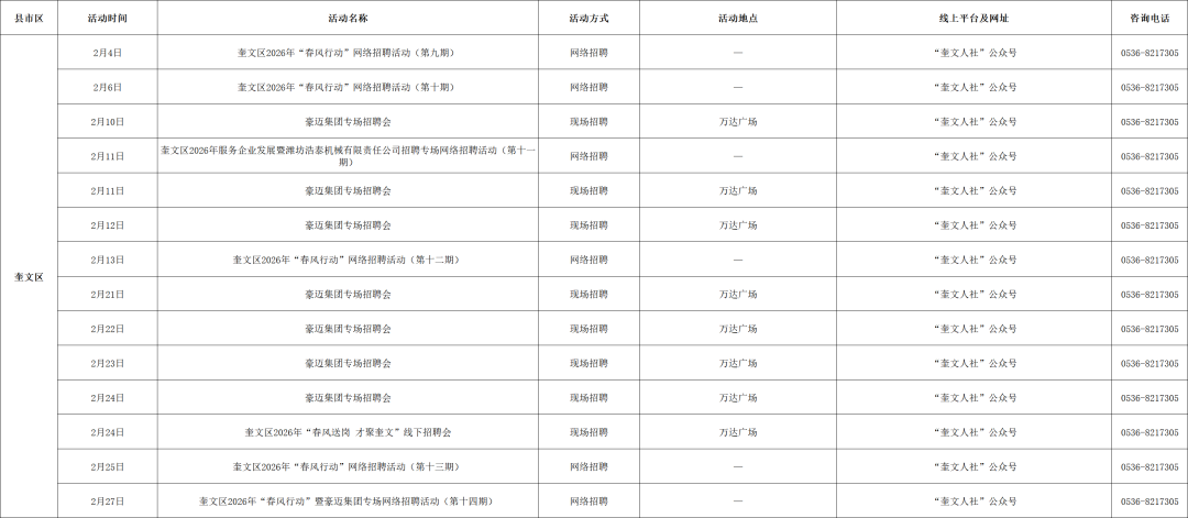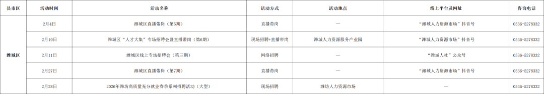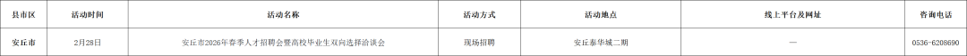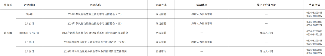 附:2026年2月份潍坊市招聘活动计划表
