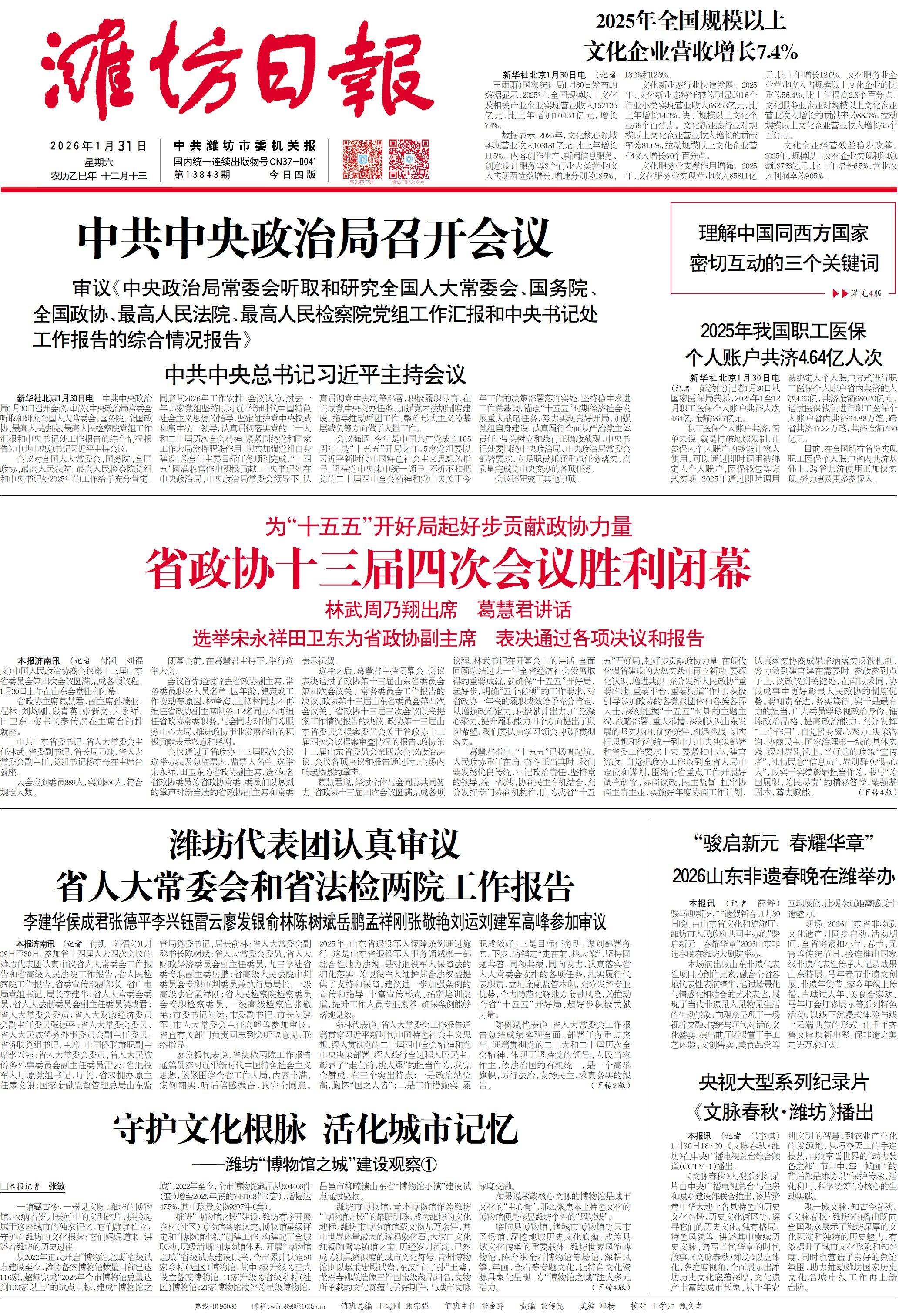 让历史有归宿、文脉有延续、城市有温度,一座博物馆的高度,就是一座城市文化软实力的厚度。打造“博物馆之城”,潍坊不仅实现了从远古生物遗产到近现代民俗、红色文化的系统性保护,更以特色展览、实景还原等形式让散落在城市各处的历史记忆得以活化,让本土文化既有“馆藏”的底蕴,也有了“流量”的活力。