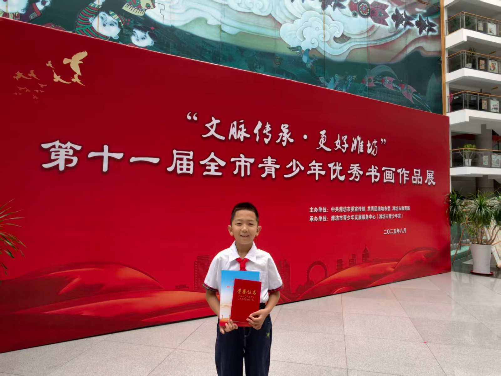 为了让宣讲更专业、故事更动人,她主动化身“红色资料收集员”。课余时间泡在图书馆红色文献区,翻阅有关潍坊革命历史的书籍,将英雄事迹逐字摘抄。凭借对红色文化的热爱和扎实的语言功底,她通过层层选拔成为了潍坊市党史教育馆、潍坊市科技馆、十笏园博物馆的“小小讲解员”和潍县西方侨民集中营旧址博物馆的“和平小使者”。并在“重温党史军史 传承红色基因”全国青少年志愿活动中,获评“最美志愿者”。凭借出色表现,她作为学生代表参加澳潍青少年文化交流活动,以少年之声为和平歌唱,为红色续航。
