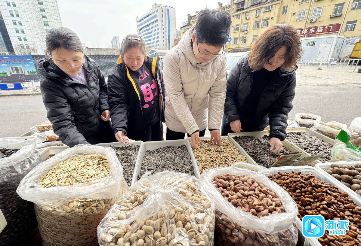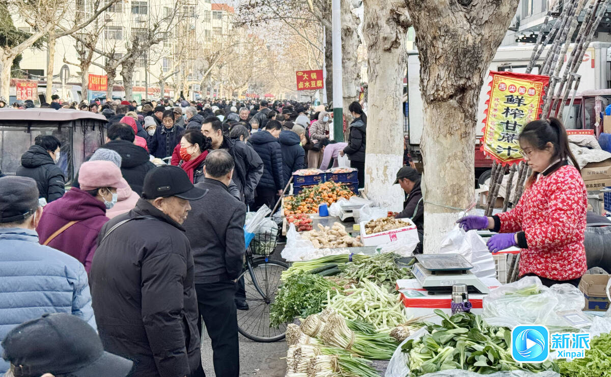 在奎文区圣疃巷一处集市,市民在购买年货。