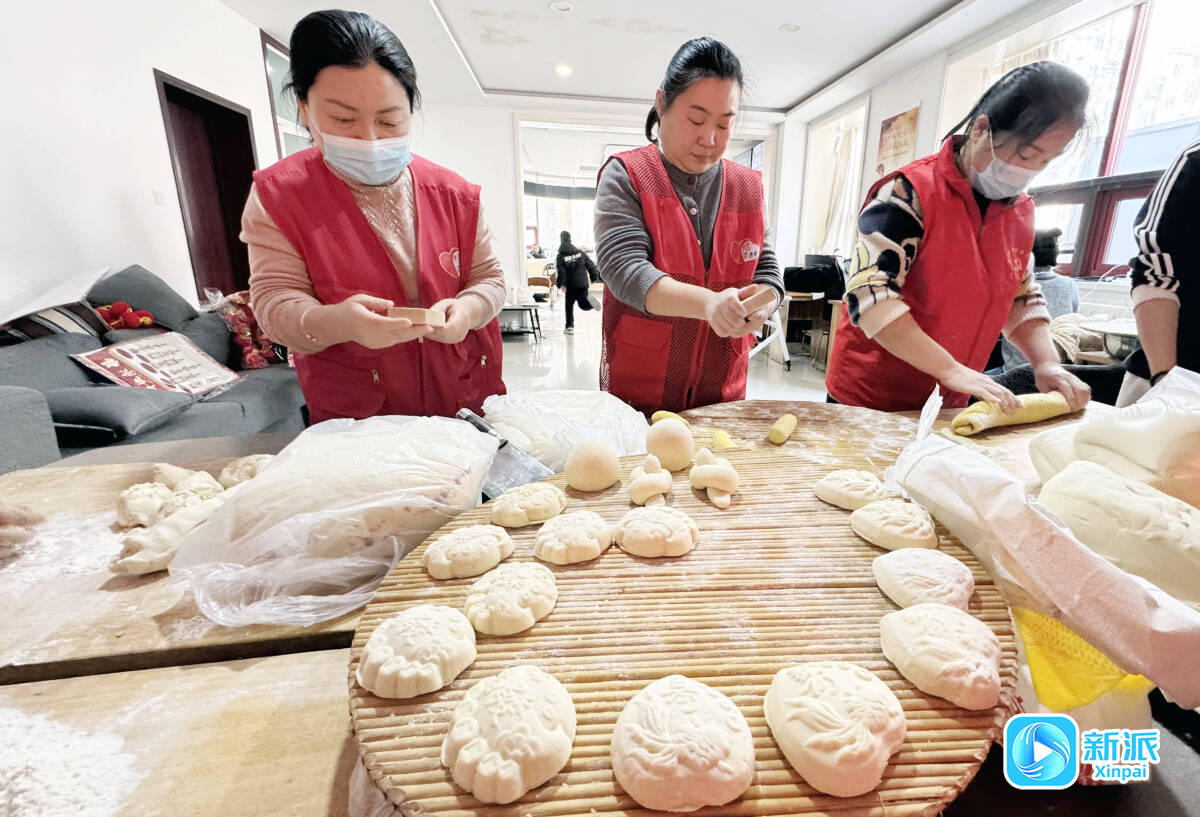在奎文区东关街道奎文门社区,居民们正在制作面食。