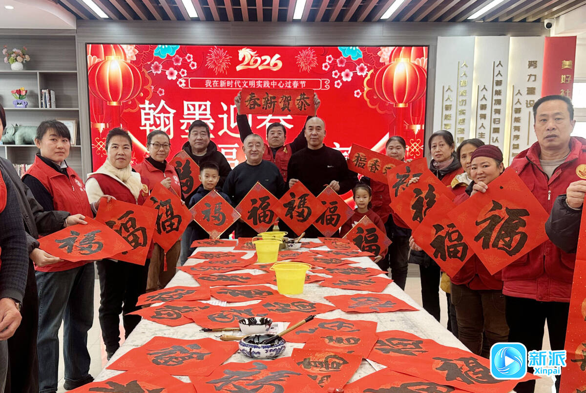 在潍城区城关街道增福堂社区,居民们书写“福”字。