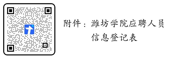 应聘人员应如实填写《潍坊学院应聘人员信息登记表》(附件),并将《潍坊学院应聘人员信息登记表》及其他报名材料(包括学历学位证书/国外学历学位认证书、学术论文、科研成果等)以压缩包方式(压缩文件大小不超过50MB)发送至人事处邮箱(wfurck@wfu.edu.cn),邮件主题格式为:应聘二级学院名称+姓名+所学专业+学位+毕业学校。