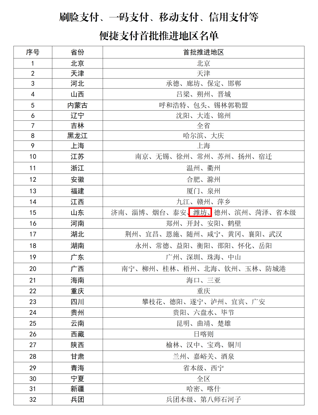 为切实解决群众看病缴费“多次排队”“排长队”等堵点痛点,国家医保局部署推进刷脸支付、一码支付、移动支付、信用支付等便捷支付工作,选择119个统筹地区作为首批推进地区,力争大幅压减排队缴费时长,有效缓解参保群众排队奔波。其中,潍坊市入选便捷支付首批推进地区名单。