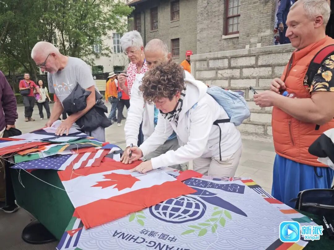 第42届潍坊国际风筝会举办期间,国际风筝运动员参加“和平之鸢 铭记历史”国际风筝运动员和平交流活动。