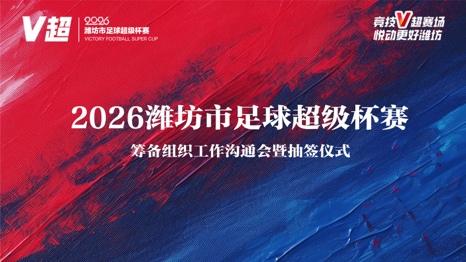 4月10日,2026年潍坊市足球超级杯赛(简称:V超)筹备组织工作沟通会暨抽签仪式在潍坊市全民健身服务中心会议室举行。市组委会和竞赛组委会相关人员及潍坊市16县市区体育部门领导、各参赛球队领队出席本次会议。