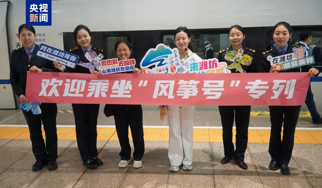 4月13日,G1069次“风筝专列”从北京南站启程,8号车厢变身“移动非遗展厅”,营造“人在画中游”的诗意氛围;北京南站候车室成为“文旅会客厅”,让旅客近距离感受风筝非遗魅力。国铁济南局首次推出高铁票价打折,凭车票游览潍坊36家景区享6折优惠。沿线车站增开绿色通道、多语种服务,并协调开通直达放飞场的公交专线,让旅客既享文化盛宴,更感服务温度。