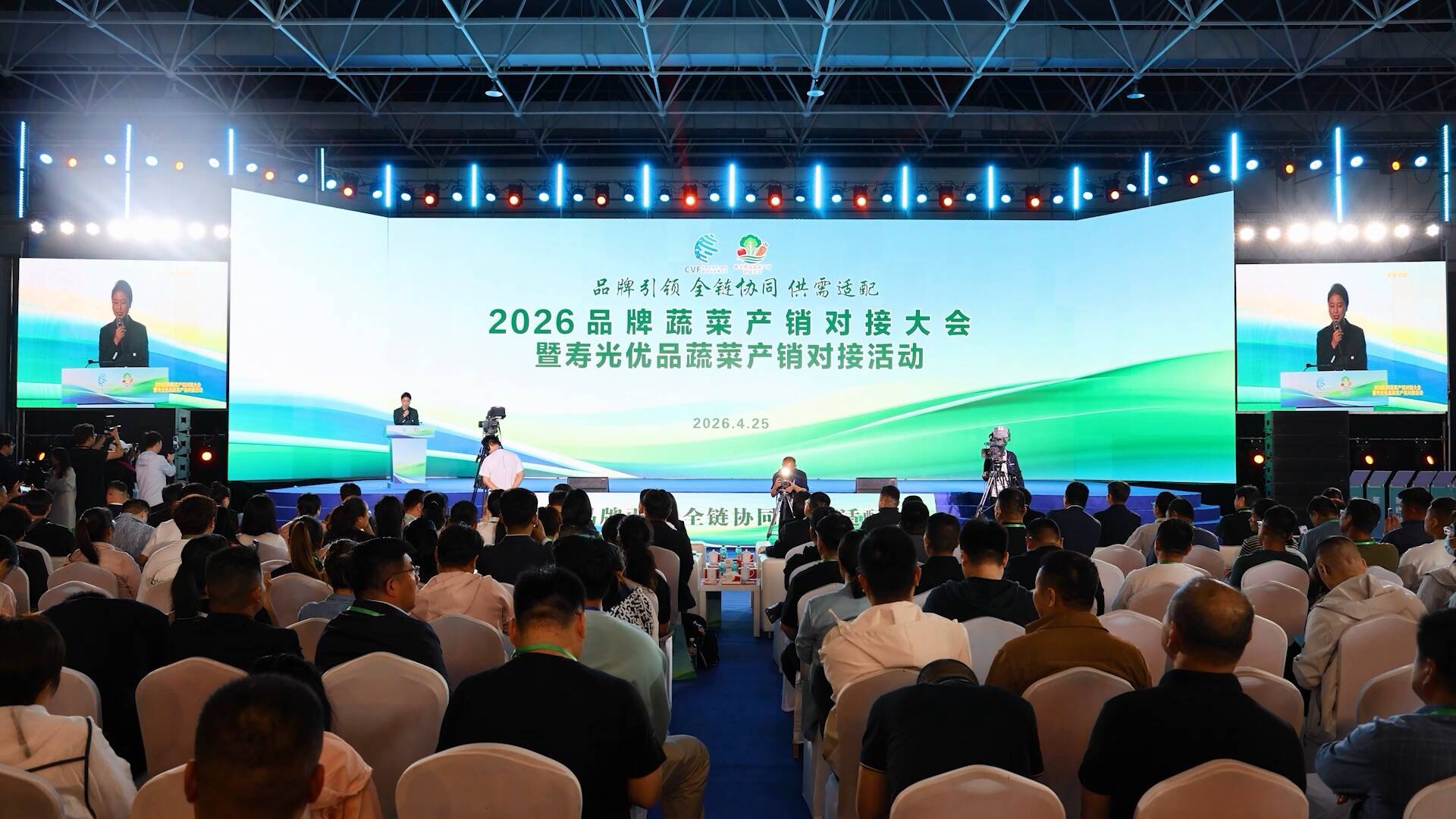 4月25日上午,2026品牌蔬菜产销对接大会暨寿光优品蔬菜产销对接活动在潍坊寿光蔬菜高科技示范园2号馆举行。活动以“品牌引领 全链协同 供需适配”为主题,依托寿光蔬菜产业优势,旨在推动寿光优质蔬菜拓宽销路、直供全国,持续擦亮“寿光蔬菜”金字招牌。